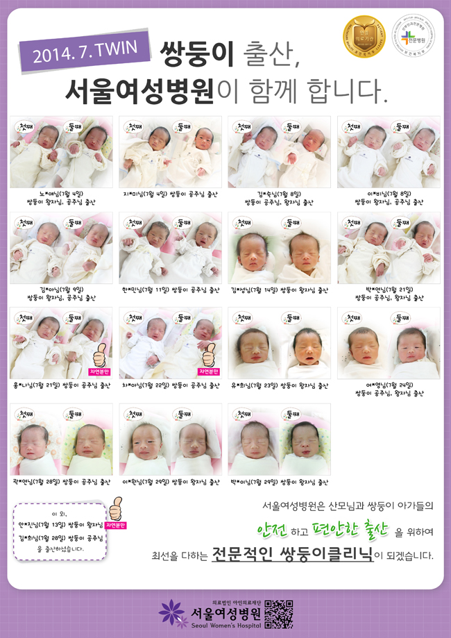 2014년 7월, 서울여성병원에서 17쌍의 쌍둥이가 건강하게 태어났습니다 :)