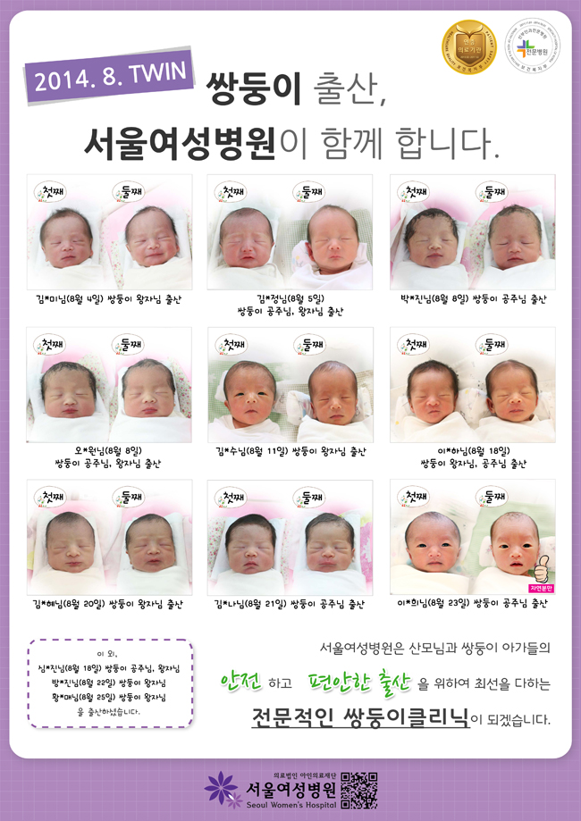 2014년 8월, 서울여성병원에서 12쌍의 쌍둥이가 건강하게 태어났습니다 :)