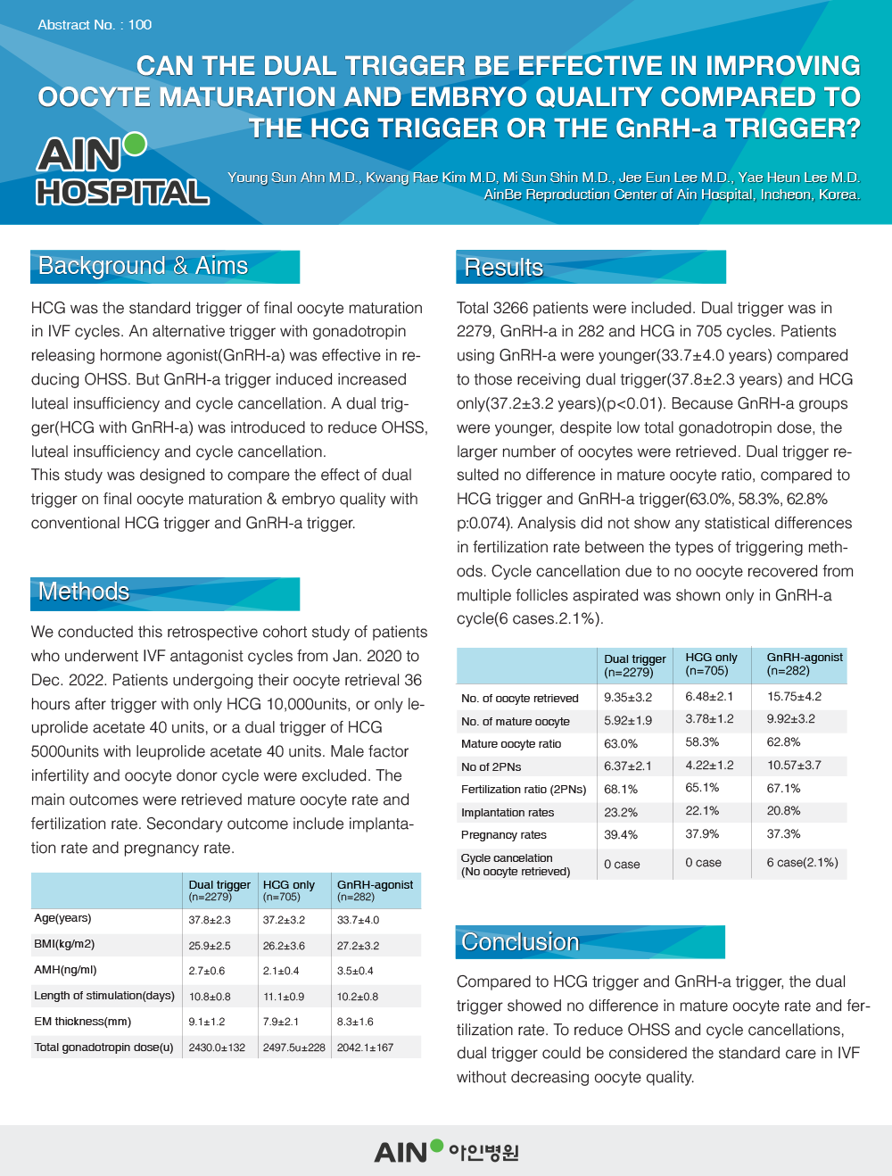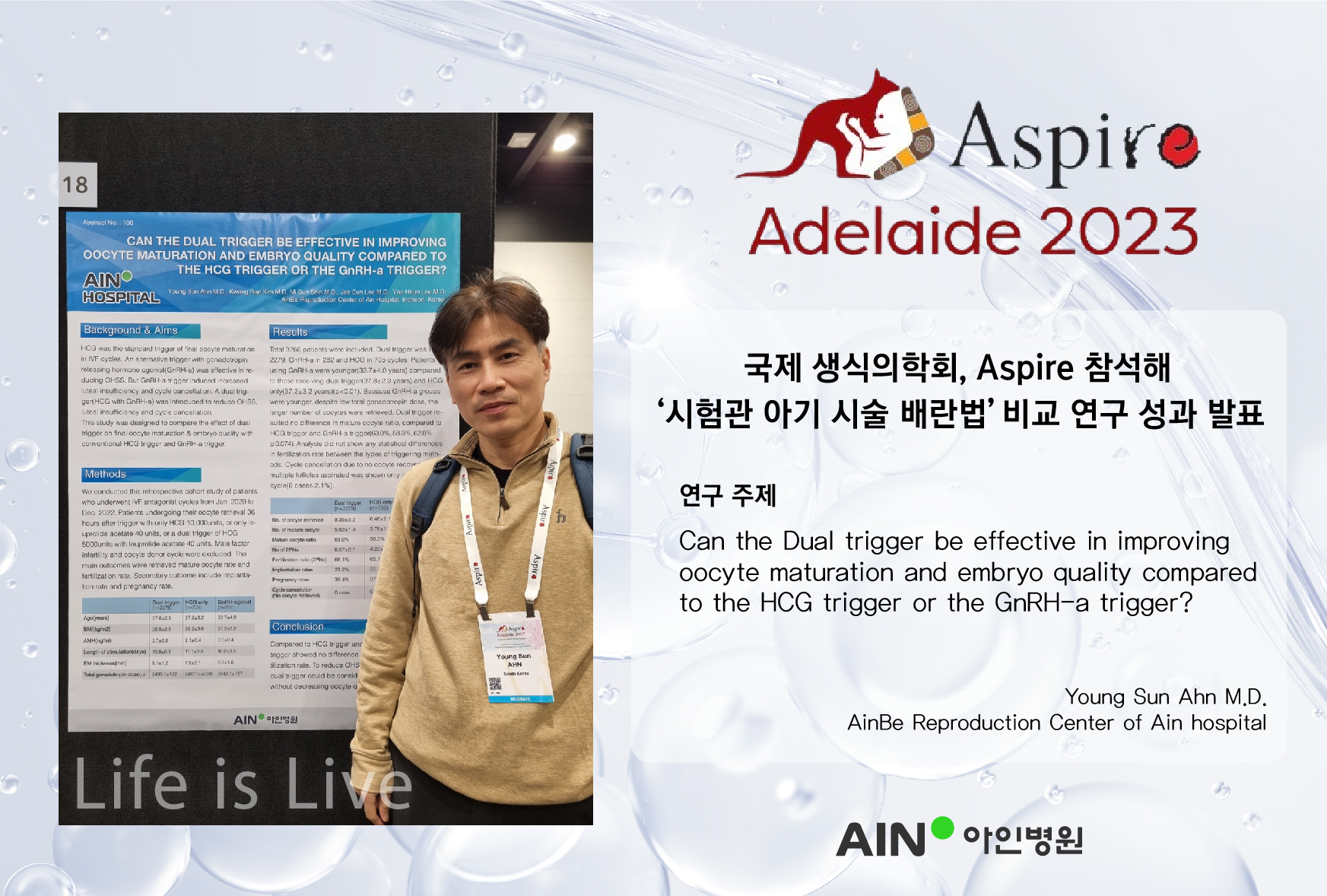 [아인비 난임 연구활동] 아인병원, 국제 생식의학회 Aspire에서 '시험관 아기 시술 배란법 비교 연구' 성과 발표