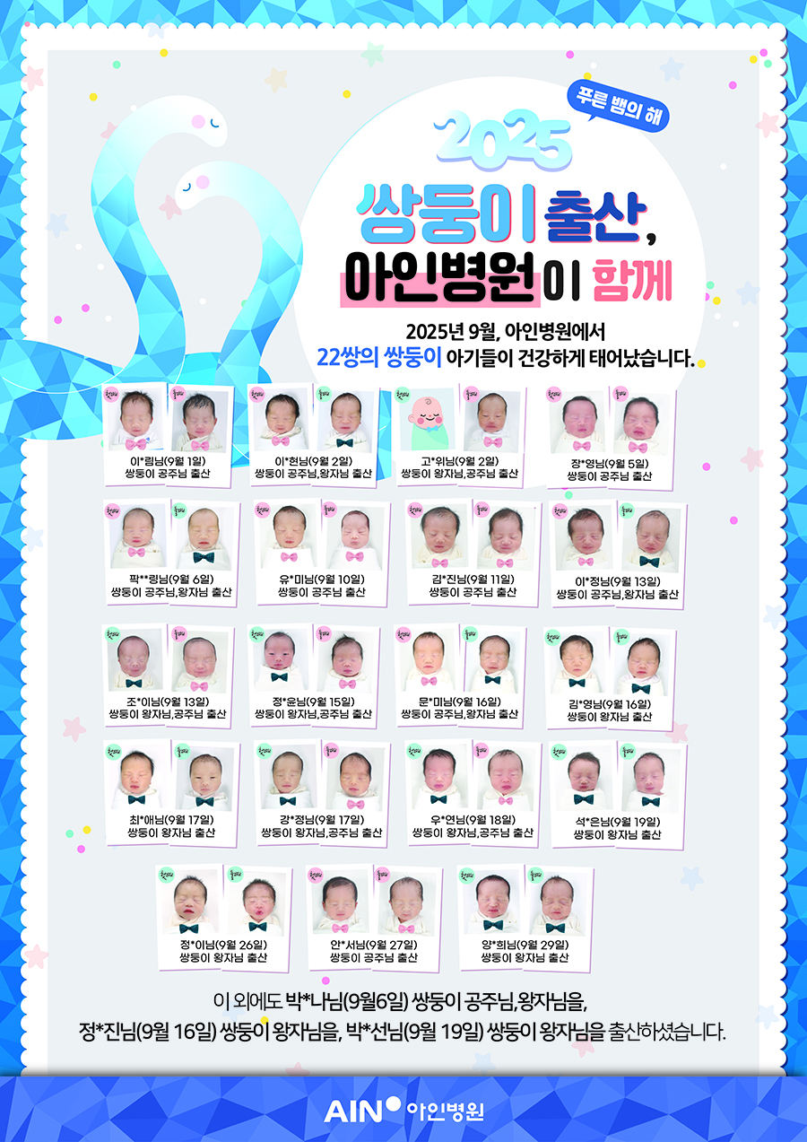 25년 9월, 22쌍의 쌍둥이 아기들이 건강하게 태어났습니다. -