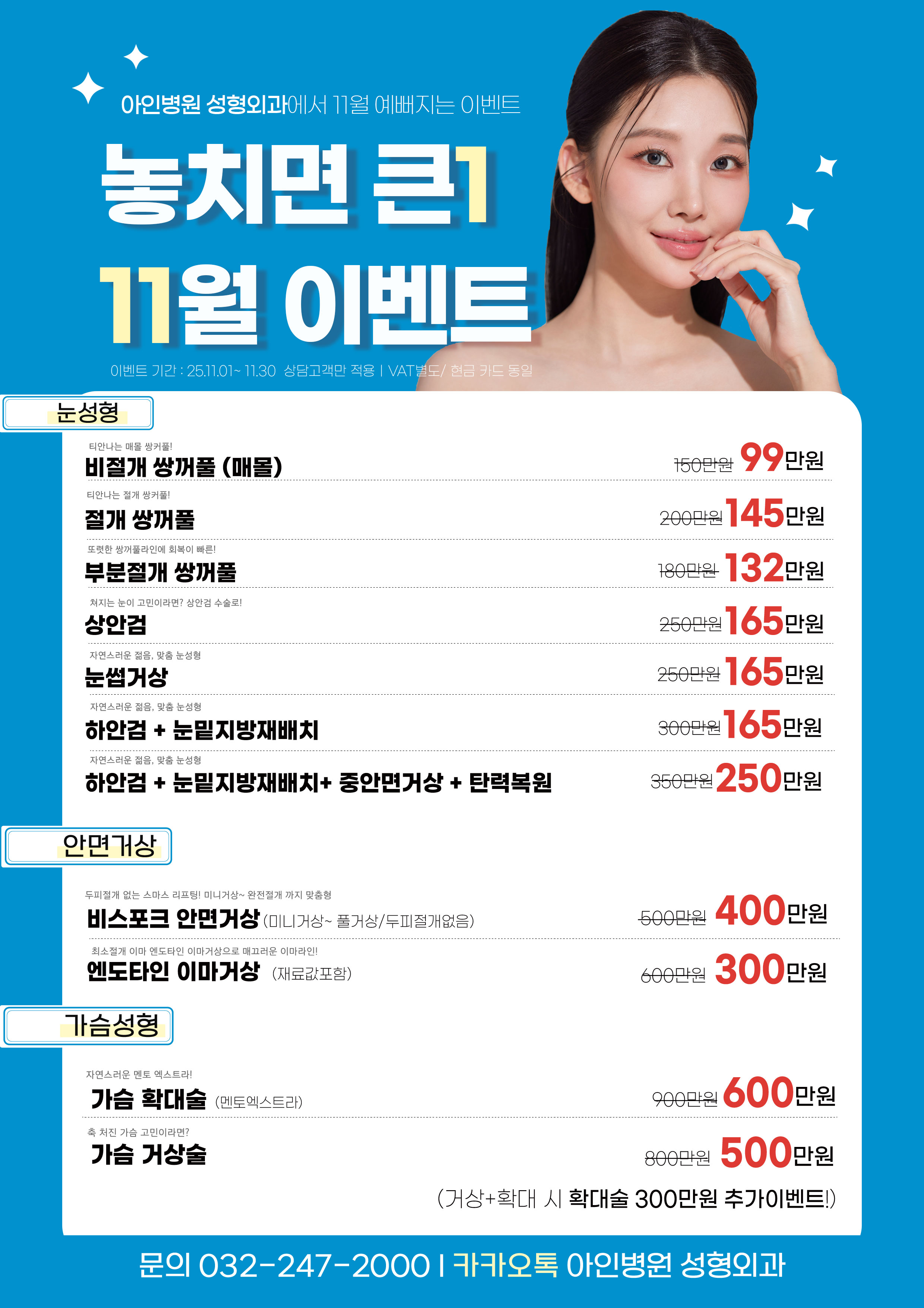 💙아인병원 성형외과 놓치면 큰1 11월 이벤트 (~11/30)💙