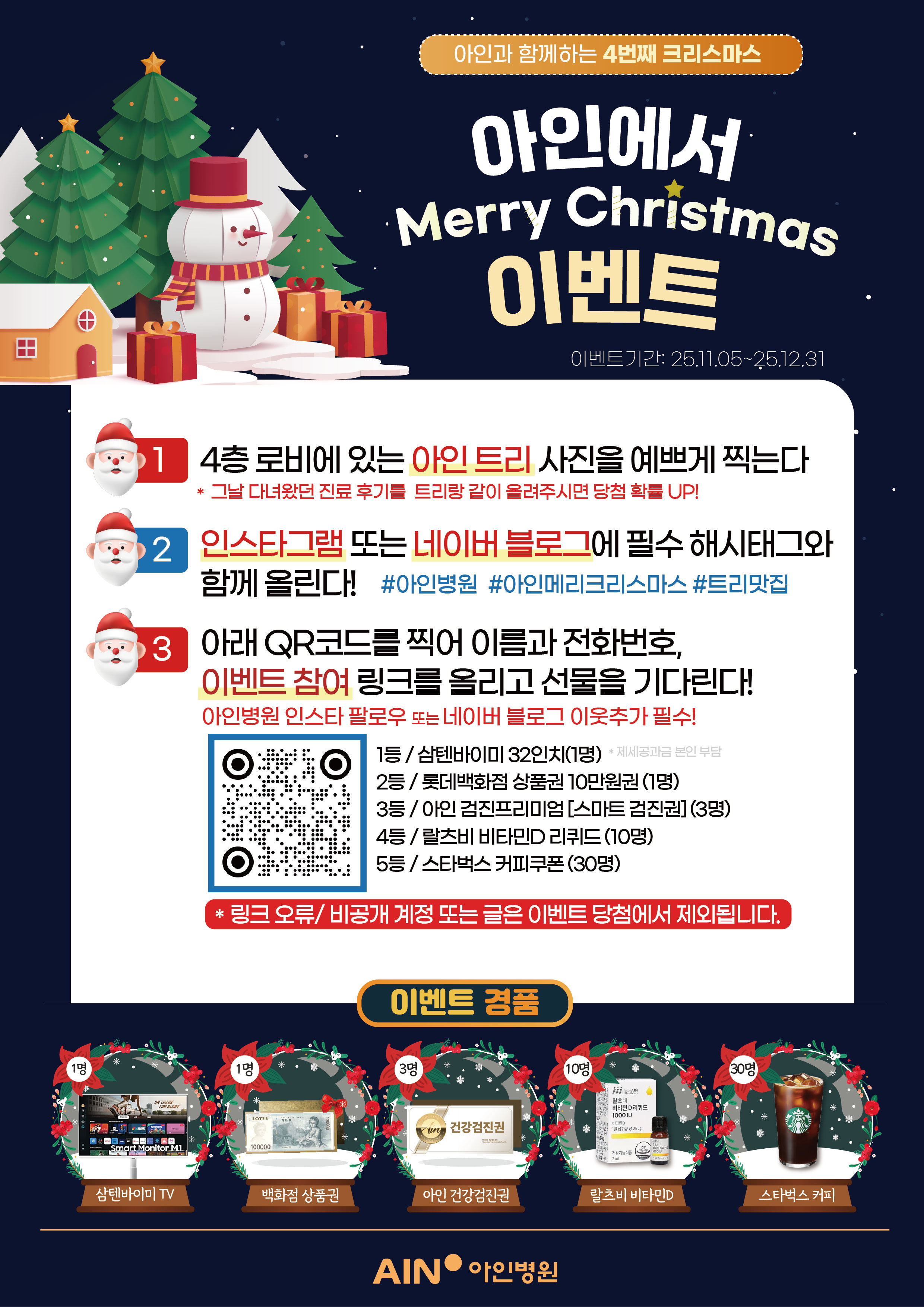 [이벤트] 2025 아인병원 네번째 크리스마스, 아인메리크리스마스! (11/5~12/31)🎄☃️