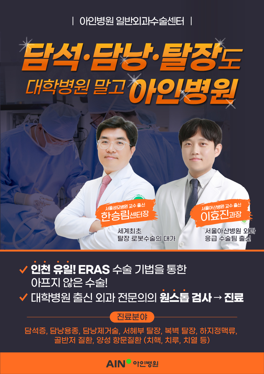 아인병원은 담석·담낭·탈장 등 복부 외과 질환을 전문적으로 진료하는 센터로,