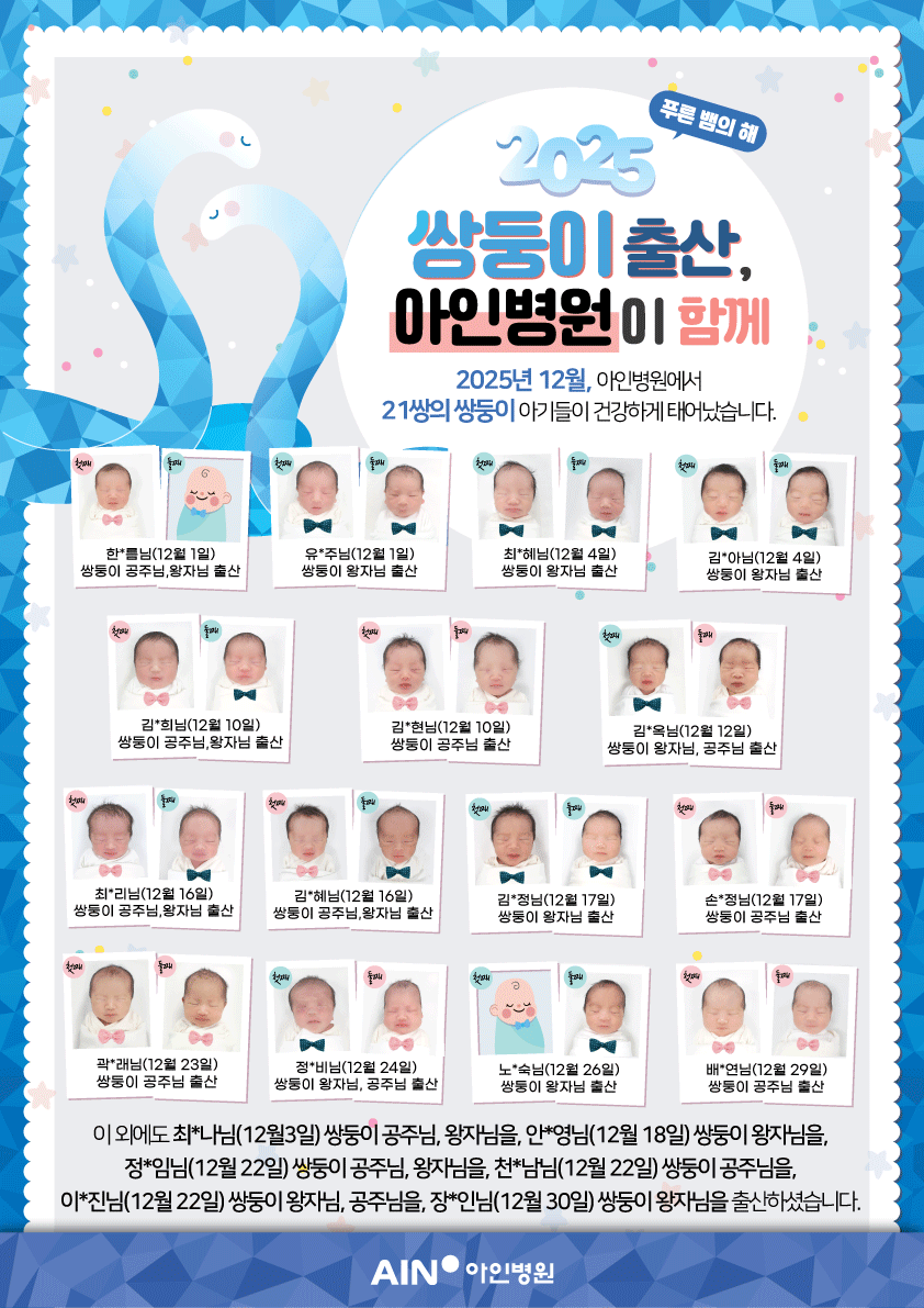 25년 12월, 21쌍의 쌍둥이 아기들이 건강하게 태어났습니다.