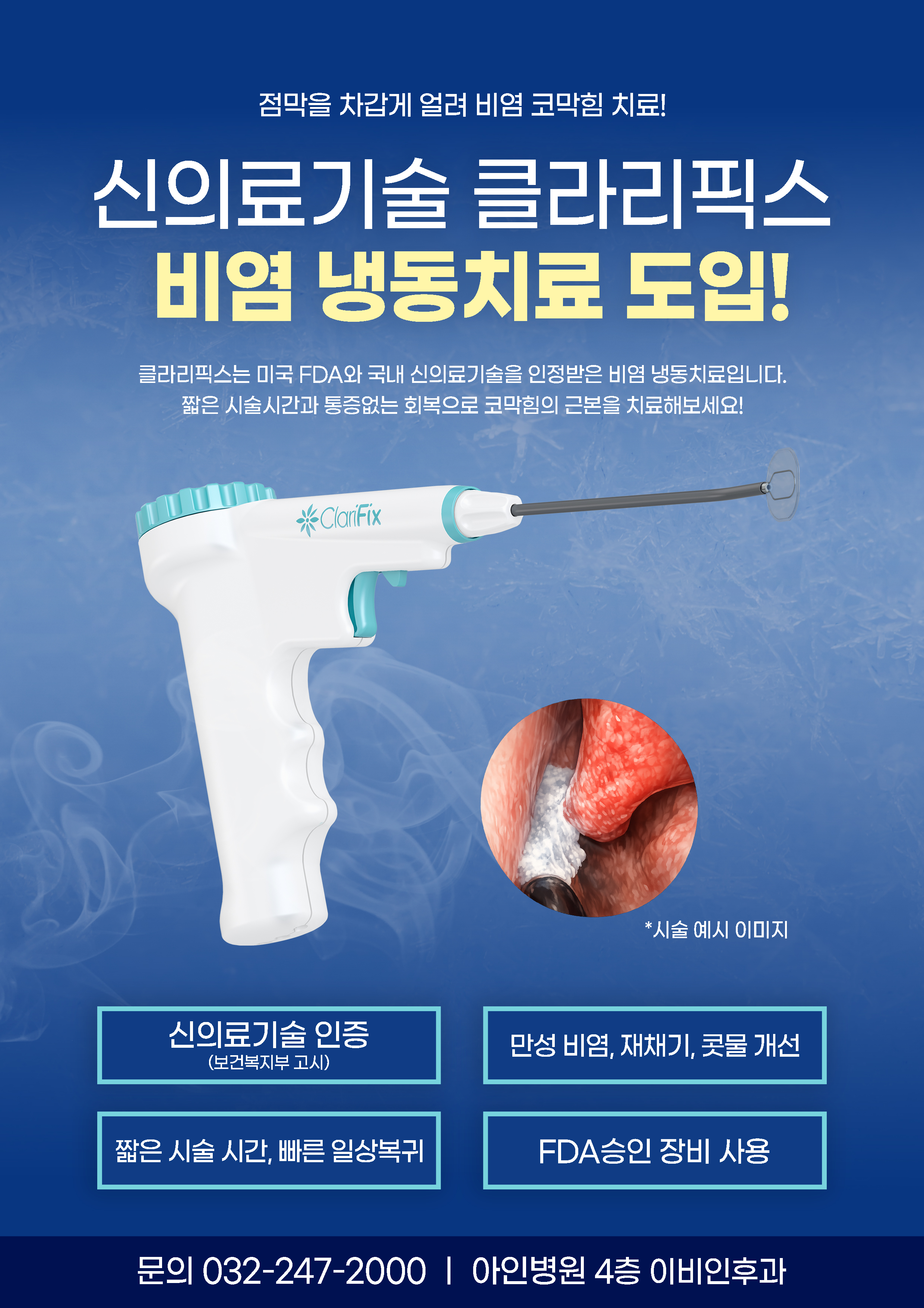 [병원소식] 아인병원 이비인후과 비염 냉동치료 도입👃❄︎