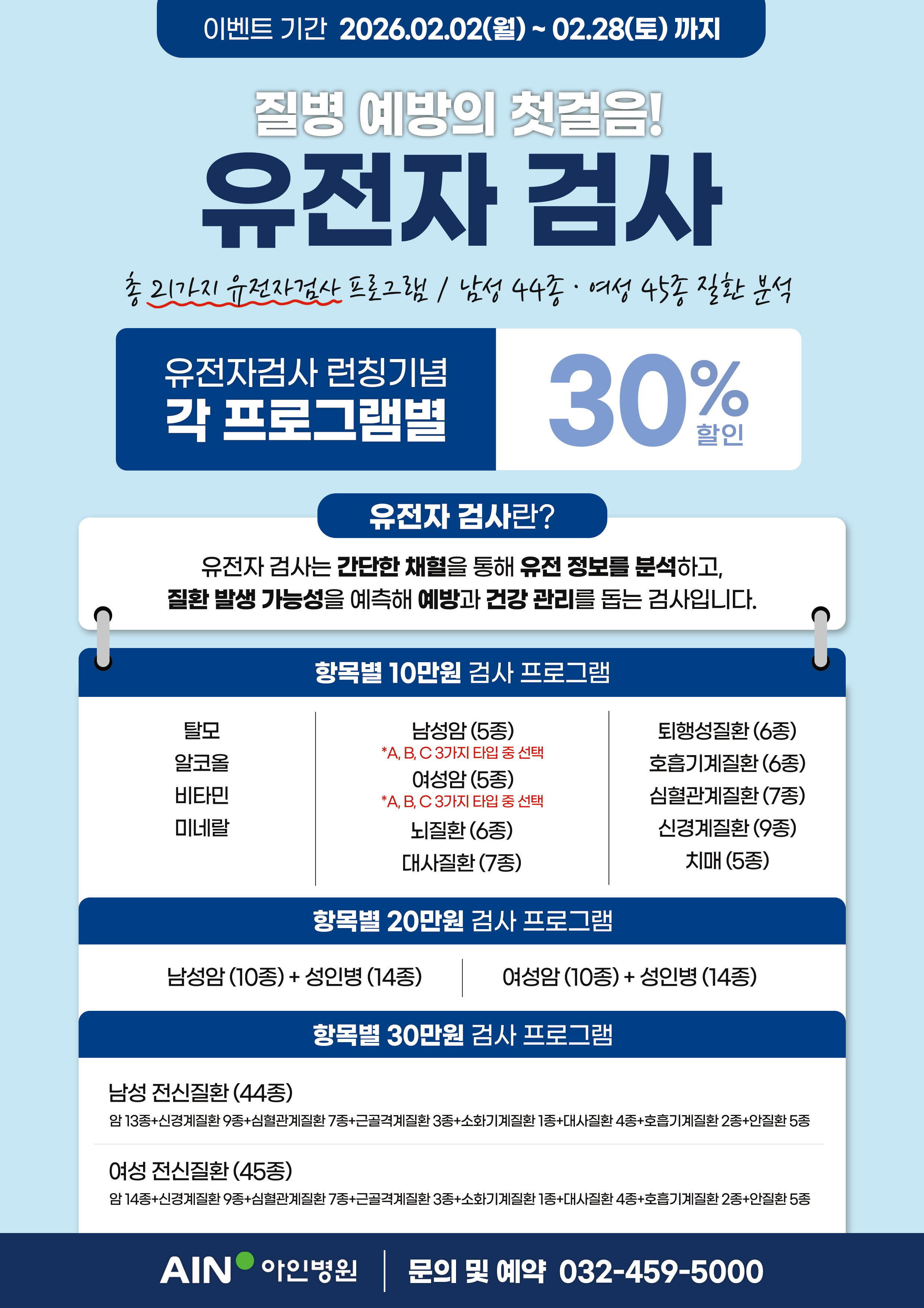 [이벤트/건강검진] 아인병원 치매예측검사 및 유전자검사 할인 안내🧠🧬 (~2/28)