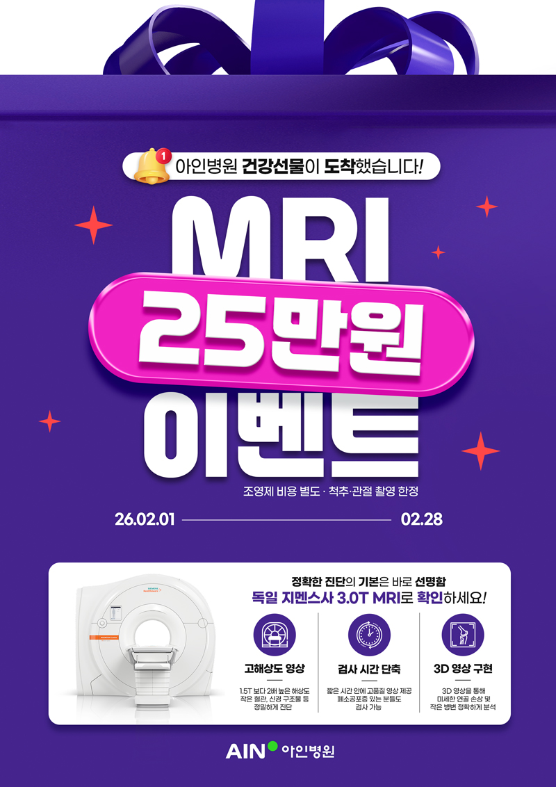 [이벤트] 아인병원 건강선물이 도착했습니다! MRI 25만원 이벤트🎁⚙️ (~2/28)