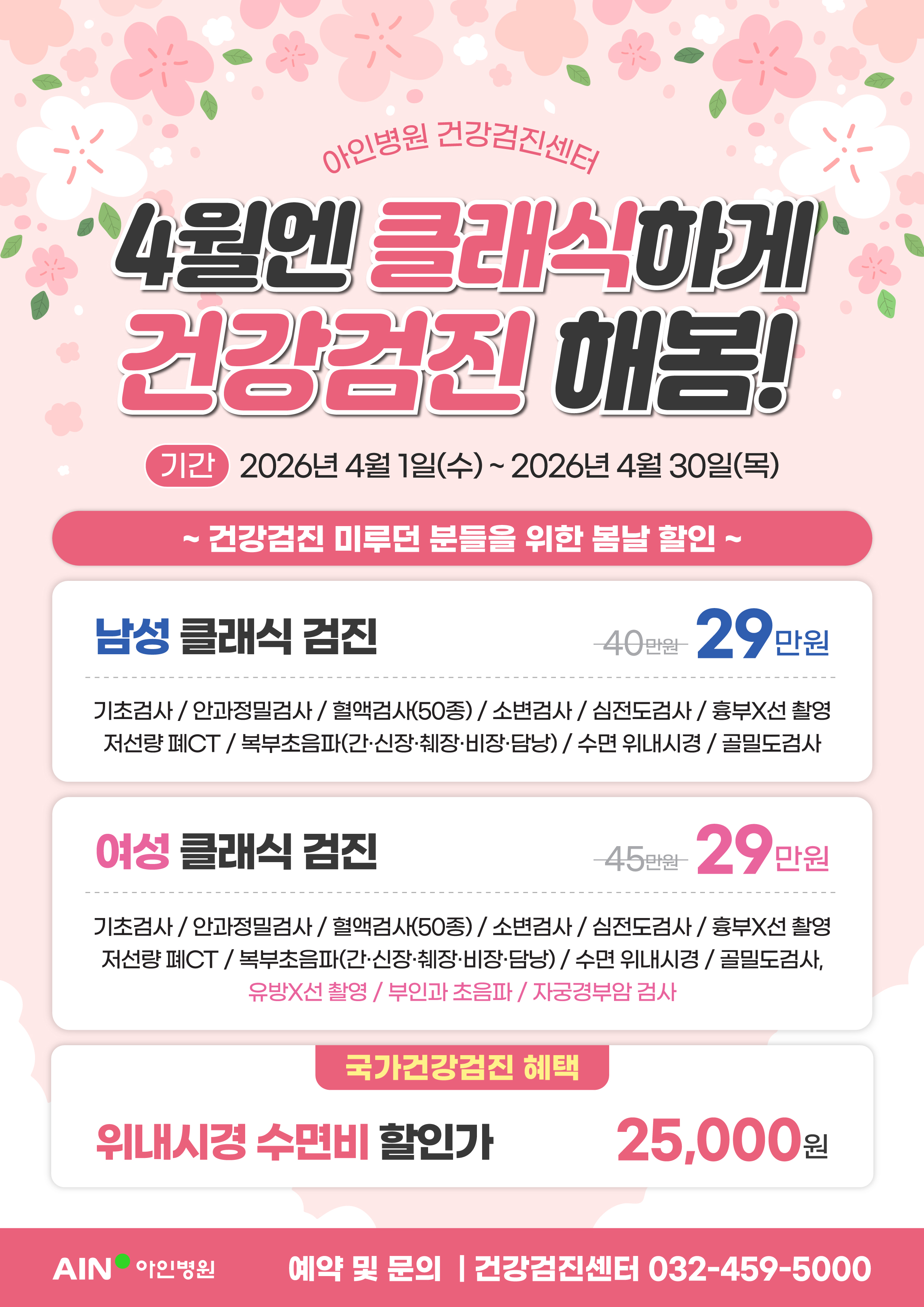 🌸아인병원 4월 봄맞이 건강검진 할인 🌸