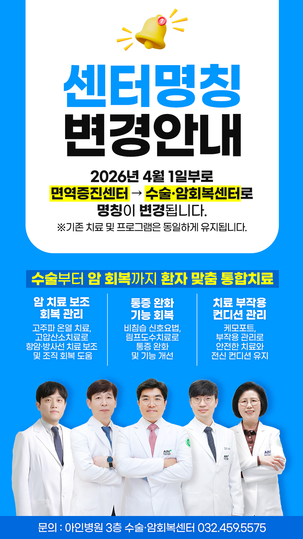 [병원소식 ] 면역증진센터 → 수술·암회복센터로 명칭 변경 안내 (4/1 부터 변경)
