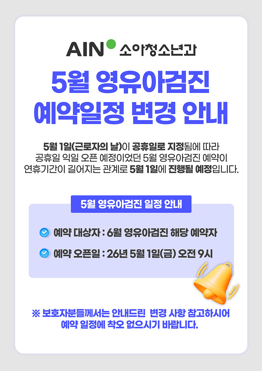 [공지] 소아청소년과 5월 영유아검진 예약일정 변경 안내