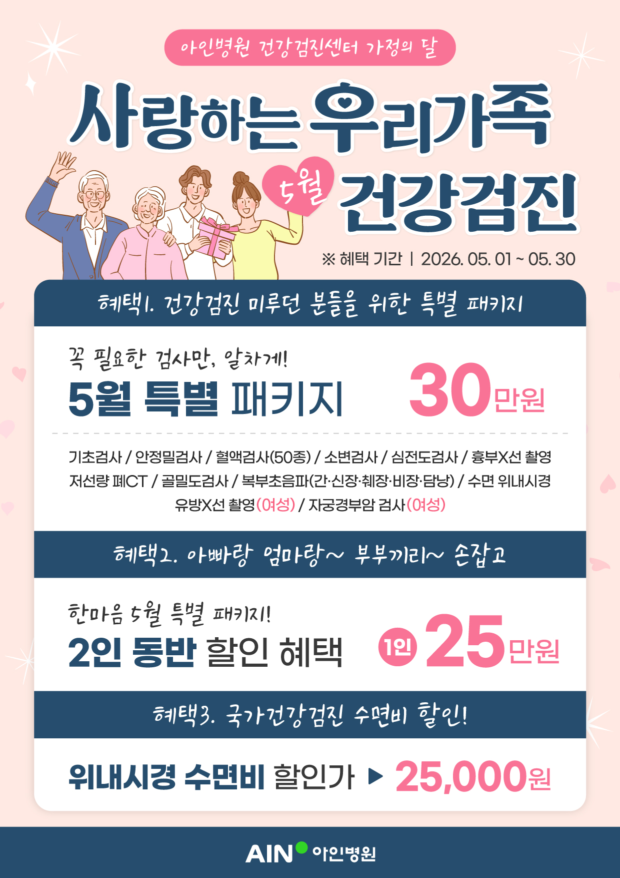 💗아인병원 가정의 달 건강검진💗5월엔 사랑하는 가족과 함께 건강하세요!